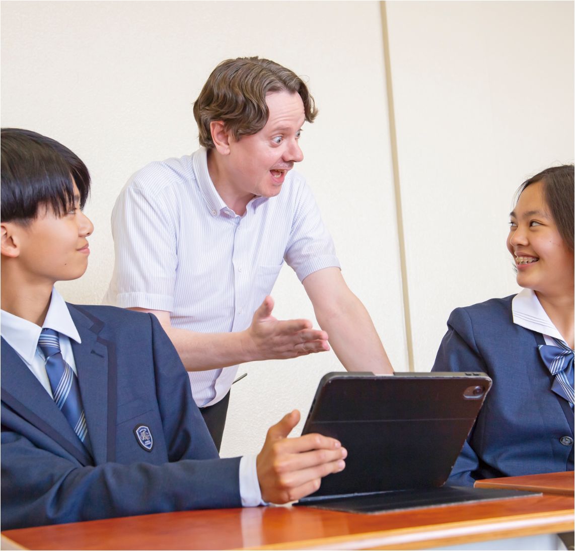 外国語の授業は全学年とも週10コマ以上を確保。うち2コマはネイティブ教員主導で、英語によるプレゼンテーション、ディスカッション、ディベートなどに取り組み、4技能を着実に伸ばします。 また国際ボランティア団体を訪問し、体験談を通して、異文化や地球規模の課題への理解を深める機会を設けています。
