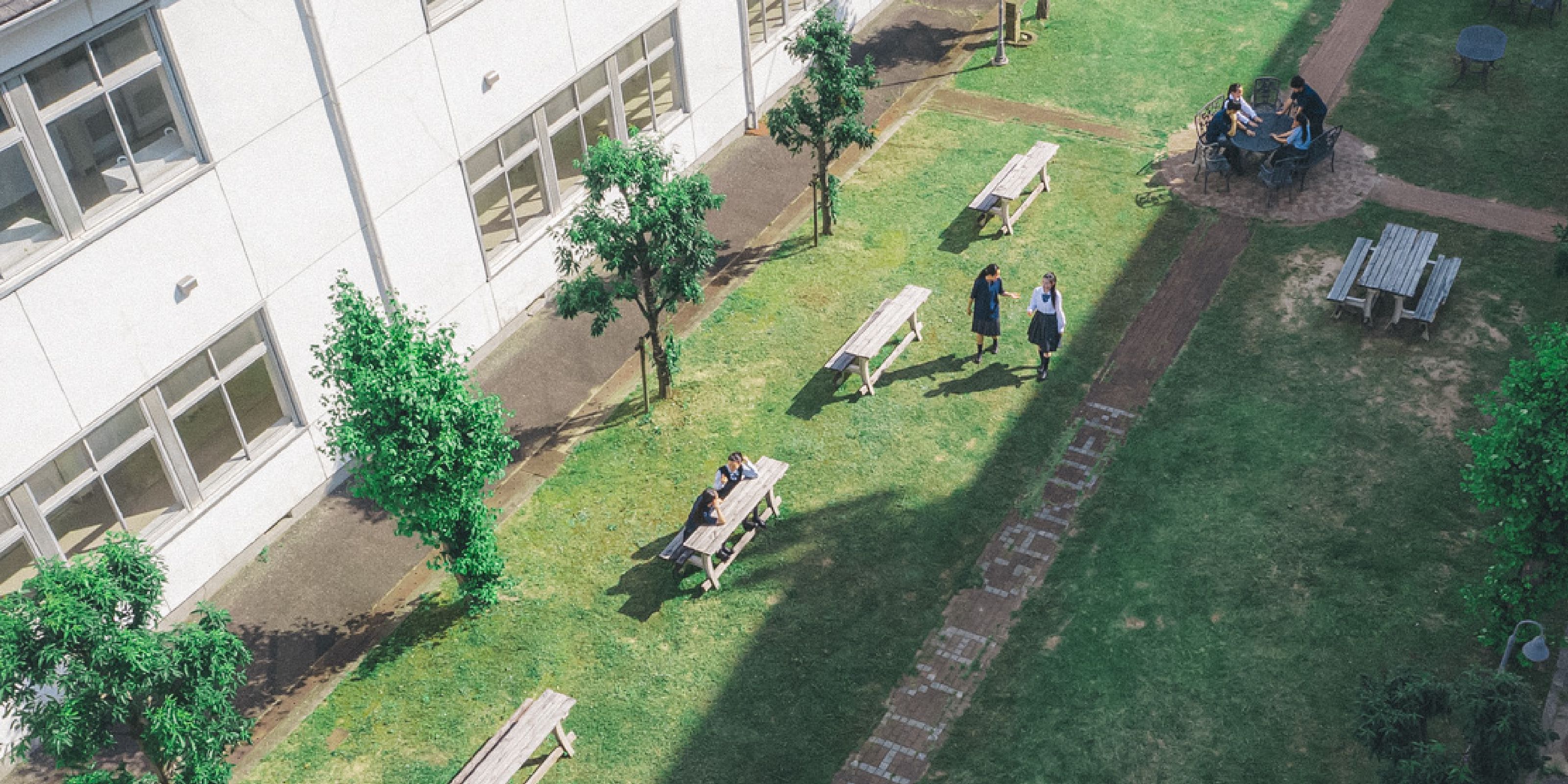 本校での学びを生かして社会や人生などの課題に粘り強く取り組み、さまざまな人と協働して新しい価値の創造に挑戦し、未来を切り拓く力を養成します。