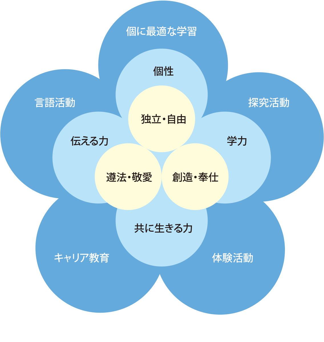 生徒一人ひとりを大切にし、その特性や興味・関心、発達の段階、学習の到達度等を踏まえ、生徒が個性を自覚し、さらに伸長するように学びを進めます。