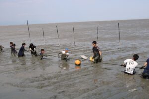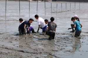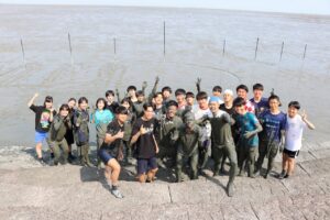 『アスリートコースは「道の駅 鹿島」にて有明海の干潟でガタリンピックを行いました。みんなドロドロになりながら、チーム対抗戦を行い、大いに盛り上がりました。』