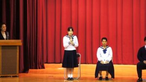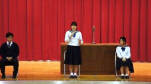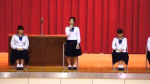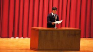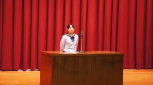 今年は『20年後のわたしと対話する』をテーマに考えられました。審査基準となる高1A大盛さんのスピーチで始まり、各学年から選ばれた8人がそれぞれの思いを披露しました。発表後も質疑応答があり、出演者はかなり緊張をしていたようです。