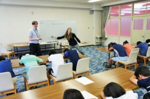 英語に関心や興味を抱いている児童のみなさんに、本校ネイティブ教師と触れ合いながら、英語に親しんでもらえる講座です。この日も、多数の児童が参加してくれました。