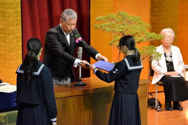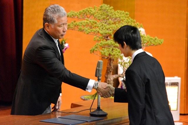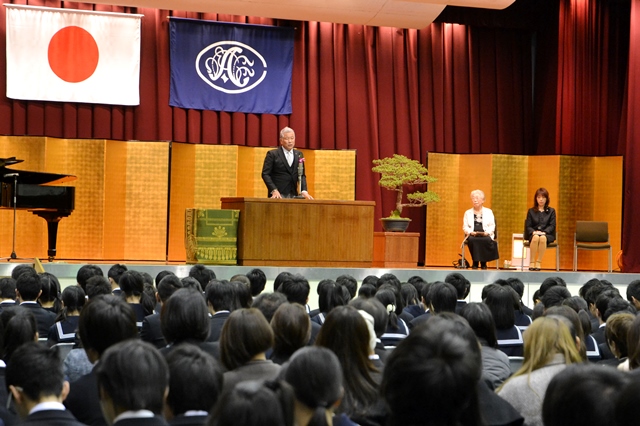 国歌・校歌斉唱、卒業証書授与に続いて行われた大八木淳史校長(理事長)の式辞の中で、「これからの皆さんの人生に於いて上手くいった時は”おかげさま”という感謝の気持ち、上手くいかなかった時は”身から出たさび”という内省の姿勢をもって生きていってください。」というメッセージが送られました。