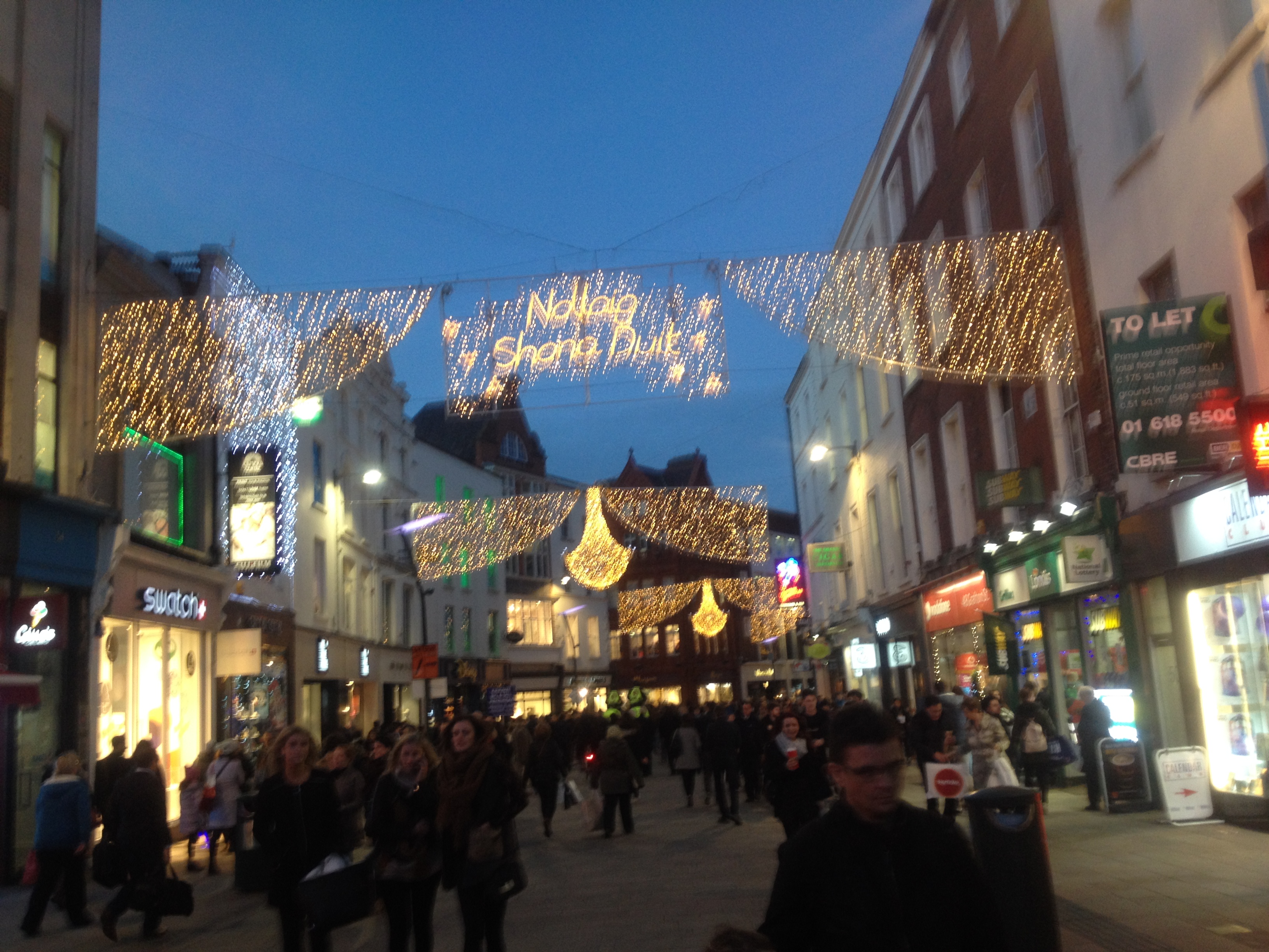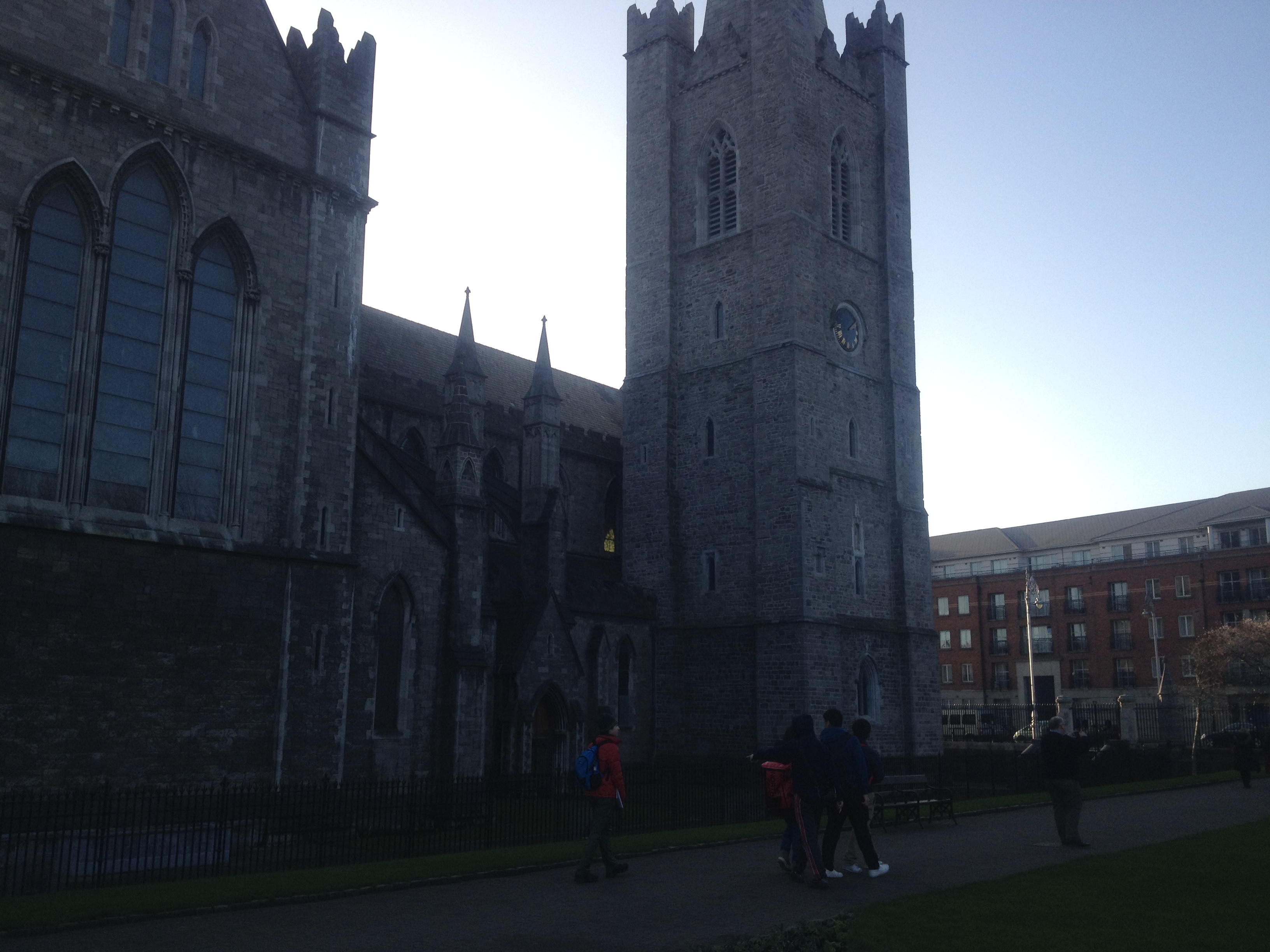 中学 高校 Topics アイルランド クリスマスホームステイ だより② 2015.12.22 12月21日昨夜が遅かったので、今日は10時からの授業でした。クリスマスに関する言葉を使いながら、単語でなく文章にして話す練習をしてもらいました。午後は、ダブリンまで出かけ、法王がミサをした広大な公園、セント パトリック大聖堂、トリニティ大学など有名なところを案内してもらいました。その後は、自由時間。クリスマスの飾りつけが美しい街でショッピングを楽しみました。アイルランドの人達も、今はクリスマスのためのショッピングで忙しいようで、大変な人混みでした。