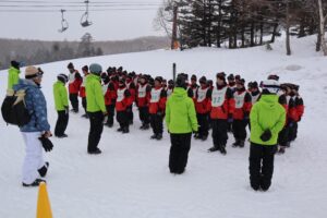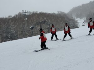高校 アスリートコース スキー実習2日目 午前 2026.03.10 雪が舞う中、寒さにもめげずに転げまくりながらも楽しいと叫び、スキーを満喫しています。 午前中から全班リフトにも乗り、インストラクターさんからは上達が早いと褒めていただき、上機嫌で転げまくっていました!