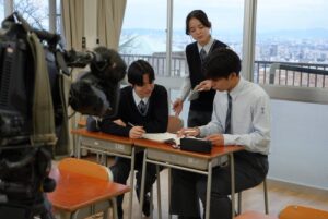 中学 高校 テレビ撮影 2026.01.29 制服紹介のテレビ撮影が行われました。 最初は緊張気味でしたが、徐々に肩の力が抜け笑顔になりました。 番組名や放送日などの詳細は後日お知らせいたします。乞うご期待!