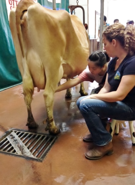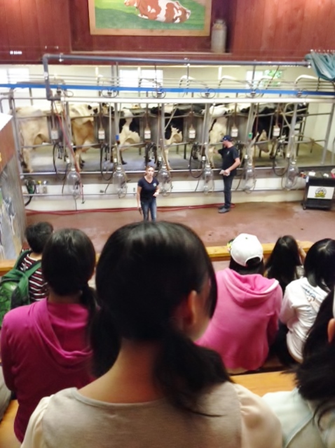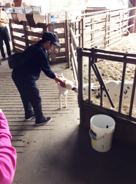 今日は午後から牧場体験。優しいエリンさんの指導で搾乳に挑戦。たくさんの種類の動物がいるのに、やっぱり一番人気はウサギでした。