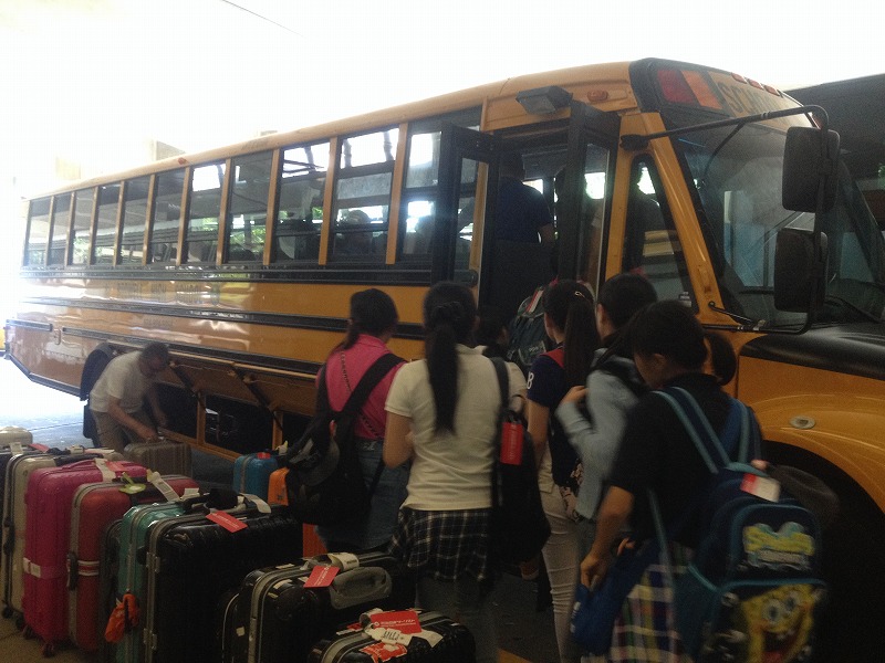 台風の残した雨風のため大変な思いで関空に集合。さらに離陸が1時間遅れたため、到着も1時間遅れましたが、みんな元気いっぱいです。研修校であるボドウェル ハイスクールのスクールバスに迎えていただき、市内観光、昼食。そして、研修校でオリエンテーションを受けた後、ホストファミリーと対面しました。皆さん暖かくてホッとしながらも、緊張の週末へと向かって行きました。