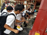 中学 高校 Topics 中3A修学旅行(熊本・長崎)だより最終 2017.07.25 8:30にホテルを出発し、九州国立博物館で歴史と文化の交流をしました。その後、大宰府天満宮で学業の祈願し、昼食をとりました。新幹線さくらに乗車し17:40に新神戸で解散しました。 中学三年修学旅行、四泊五日、印象に残る素晴らしい1ページを飾ることができました。色々な体験、歴史や文化に触れ、二学期からの授業に向けてのエネルギーになります。 皆様、お疲れ様でした。