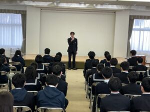 2学期の振り返りや今日から頑張ってほしいことなどを、コースの教員が伝えました。