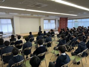 2学期の振り返りや今日から頑張ってほしいことなどを、コースの教員が伝えました。