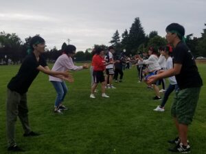 今日はsports dayで、チーム対抗でポイントを競い合いました。まず始めにチーム毎に考えた応援合戦です。応援もポイントに含まれるので、各チーム構成を真剣に考えていました。応援合戦でテンションを上げたあとは、いよいよ競技開始です。日本でもお馴染みの綱引きや障害物競争はもちろん、2人ペアで水風船を投げ合い、誰が割らずに1番長くパスできるか競い合う競争など、初めて体験する競技に生徒たちは大盛り上がりでした。