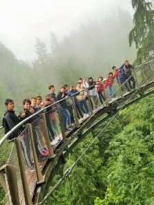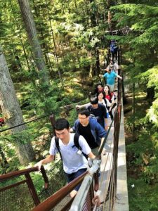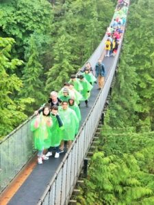 今朝は授業もほどほどに、トリップに出掛けました。グループAはCapilano Bridgeで、全長137メートルもある吊り橋を渡ったり、クリフウォークをしたりして楽しみました。悪天候でしたが、たっぷりのマイナスイオンを吸収し、リラックスすることができました。