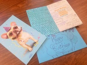 今日は、このカナダ滞在中に誕生日を迎える二人の生徒のお祝いをしました。バースデーカードには、友達だけでなく、現在授業を担当しているMs.Martinからのメッセージも書かれています。人生でたった一度きりであろうこの日が、彼らにとって思い出深い1日となりますように。