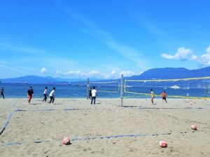 さて、今日は午前中に授業を行い、午後はグループAはキツラノビーチへ、グループBはグランビル・アイランドへ行きました。キツラノビーチはカナダでも人気のあるビーチの1つで、今日もたくさんの人々が訪れていました。生徒たちは、砂浜で思い思いにビーチバレーやフリスビーを楽しみました。グランビル・アイランドは、ダウンタウンのビル群やグランビル・ブリッジも一望できる人気おしゃれスポットで、のんびり散策して楽しみました。