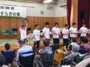 合宿3日目、特別養護老人ホーム「やすらぎの郷」にて毎年行っている慰問演奏会を、本校吹奏楽部と行いました。第1部では今月19(日)に兵庫県合唱コンクールで披露する「春」「雨」「流星」を含む5曲、第2部では動揺や唱歌を入所者やデイサービスの方達と混じり、一緒に歌いました。何度もアンコールを要望していただき、大盛況の中、終えることができました。