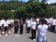 あっという間の4日間。それぞれのクラブが暑い中、充分に活動することができました。時間を守ることの大切さや、仲間を気遣うことの必要性も、しっかり学べたのではないでしょうか。閉校式では、お世話になった宿舎の方に、バトン部の笠原さんが、お礼のご挨拶を申し上げて、合宿を終えました。![]()