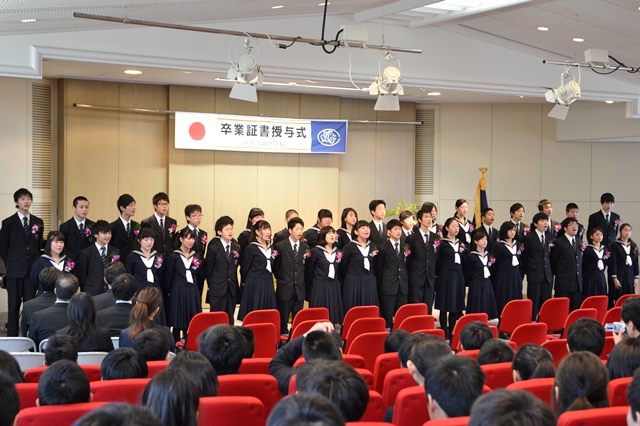2015年3月14日(土)、本校音楽ホールに於いて平成26年度 芦屋学園中学校(第67期生)の卒業証書授与式が挙行されました。
