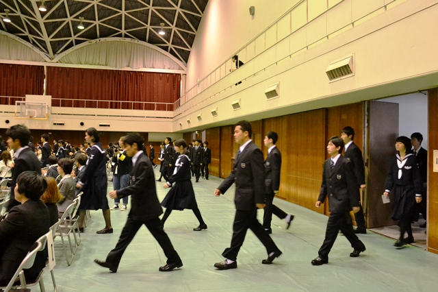 中学 高校 Topics 平成27年度 入学式が挙行されました。 2015.04.07 春というには少し肌寒い気候となった今日、平成27年度芦屋学園中学校・高等学校入学式が本校体育館でご来賓各位、多数の保護者の方々の見守る中、挙行されました。 学校長(理事長)の入学許可・式辞のあと、学長・育友会代表の祝辞、在校生代表の歓迎のあいさつと続き、新入生代表が誓いの言葉を述べました。 厳粛な中にも心温まる式典になりました。 式典終了後、クラス別に集合写真を撮影。新入生たちの希望に満ちあふれた表情が印象的でした。 「新入生の皆さん、ご入学おめでとうございます!」