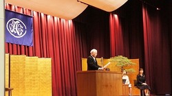 式は、国歌斉唱に始まり、学校長の入学許可がありました。次の校長式辞の中で本校の歴史と伝統を説明がありました。
