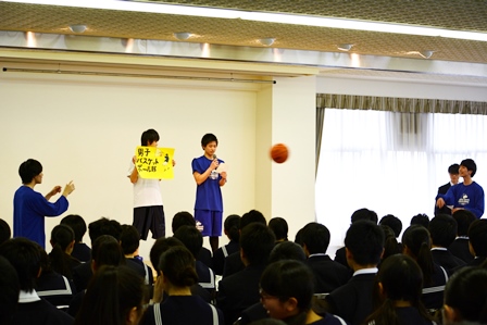 新入生たちで満員となった本校3階ホールに於いて、新入生対象「クラブ紹介」が実施されました。