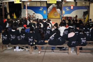 おきなわワールドで夕食後、エイサー見学に盛り上がりました。