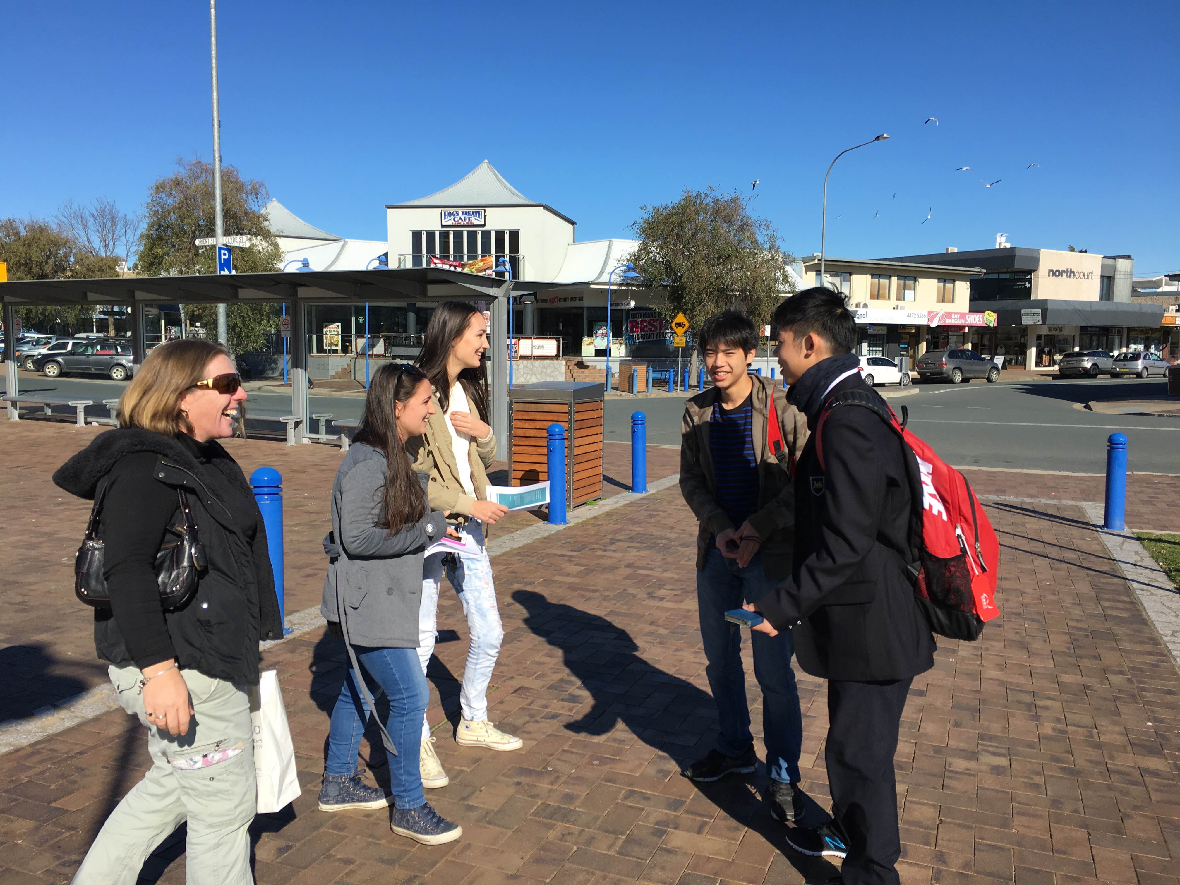 高校 Topics 海外提携校交流プログラム(セントピーターズ)だより その2 2016.07.26 2日目のセントピーターズの様子を送ります。 月曜日です。今日は学校がお休みであったため、Batemans Bayでトレジャーハンティングをしました。 トレジャーハンティングは、渡されたヒントを頼りに街中で写真を撮るというものです。 芦屋学園の生徒たちはセントピーターズの生徒やホストファミリーとチームになって探していました。 明日からはいよいよ学校が始まります。