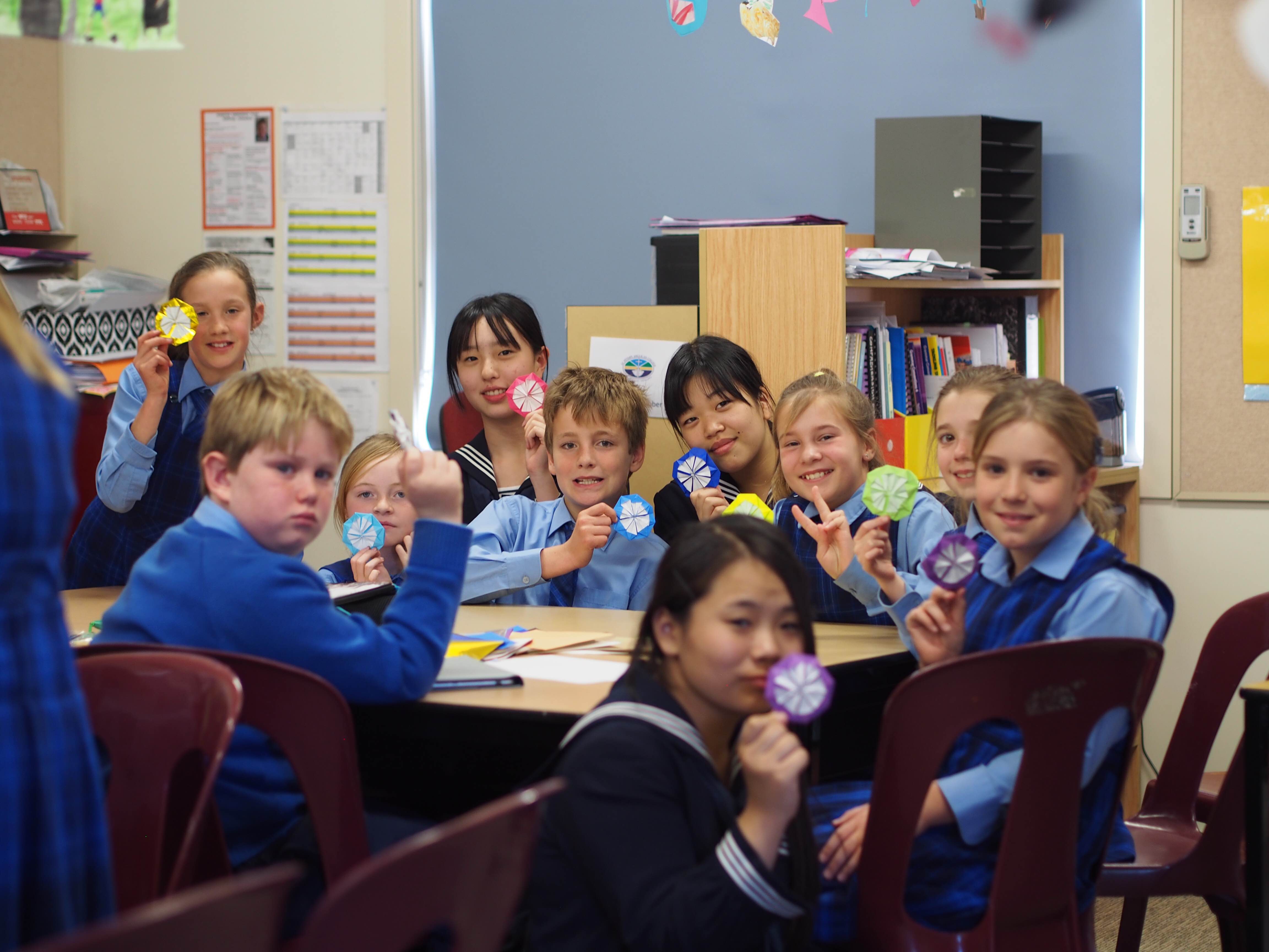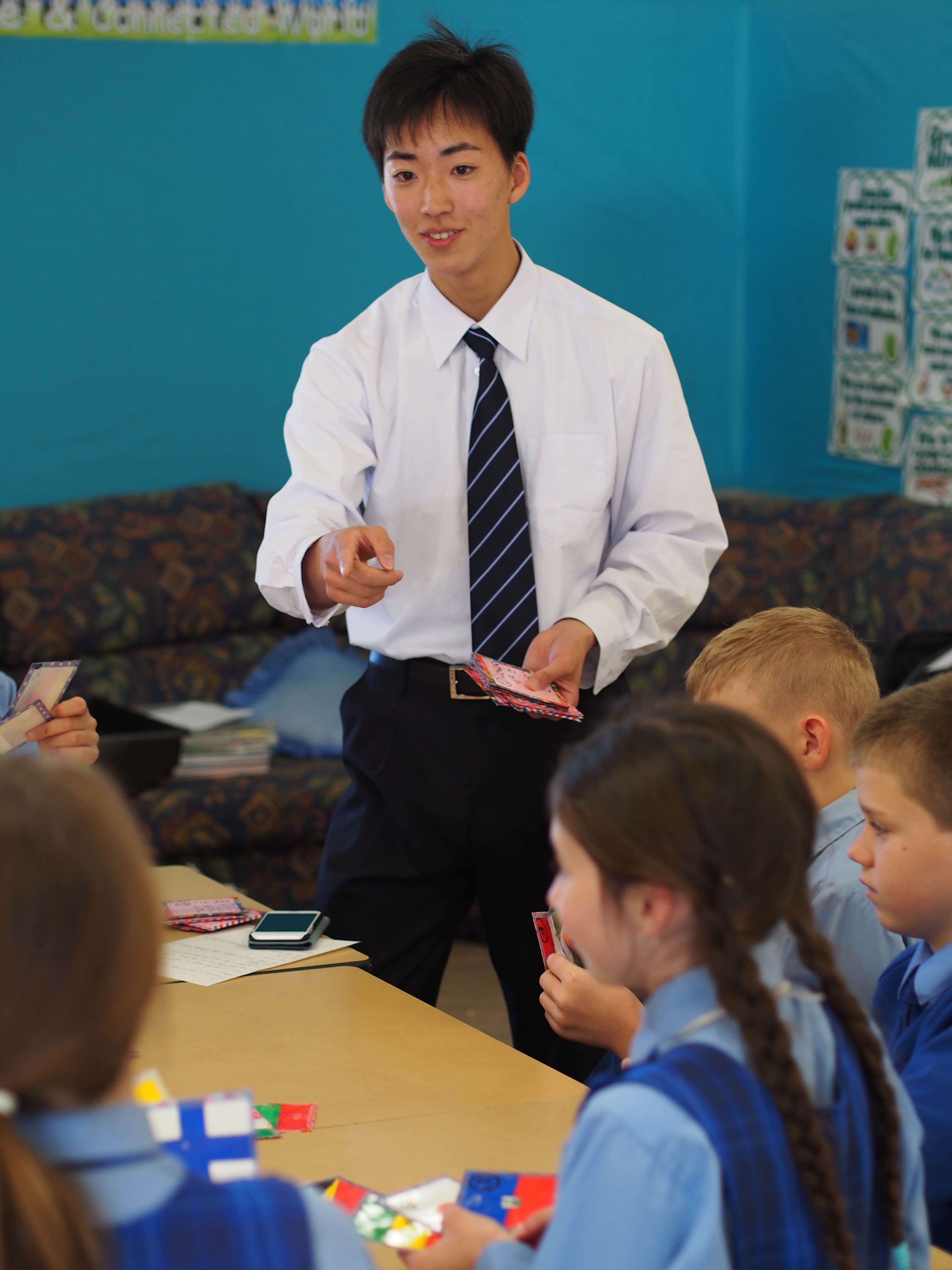 私たちは日本語の授業に参加し、セントピーターズの生徒たちと日本語や英語を交えて会話をしました。