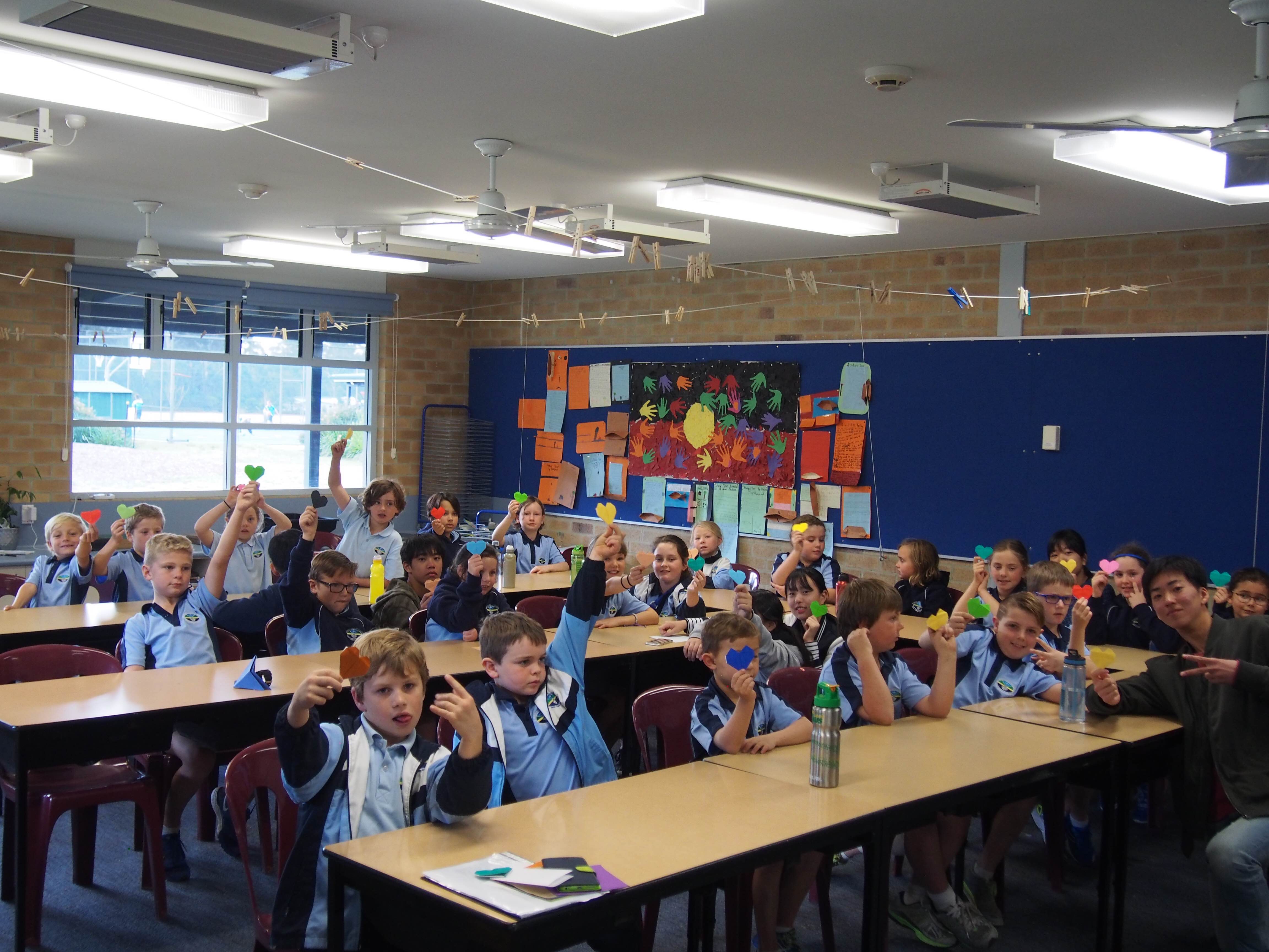 午後からは、小学校3年生と5年生に折り紙を教えたり、鬼ごっこをしたりして遊びました。