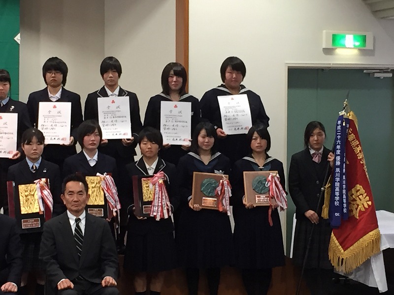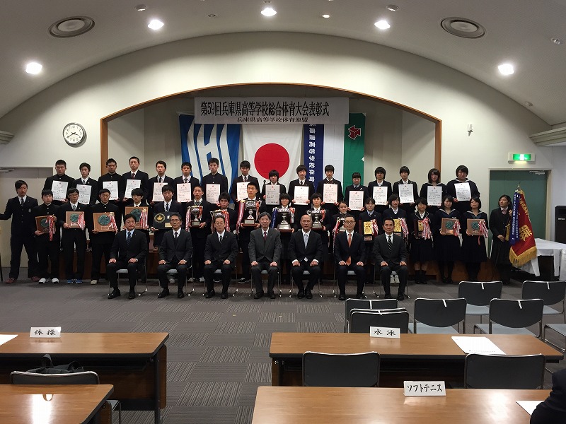 中学 高校 Topics 総合体育大会成績 女子の部 第7位 2016.01.27 1月26日に農業共済会館で行われた「第59回兵庫県高等学校総合体育大会表彰式」に、S3H隅田さん(運動部長)とS3G上月さん(卓球部部長)の2名が本校を代表して参加しました。色々行われた競技の成績を点数にして、県下の高等学校すべての中から『女子の部-第7位』の好成績でした。(6位の日ノ本学園と得点は同じでしたが競技数の違いで7位になりました)運動部の皆さんの頑張りが、今年も表彰にとどきました。おめでとう。ありがとう。