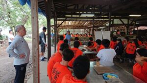 昨日、組み立てたいかだを海まで運び、「いかだトリップ」を体験しました。バランスや方向転換、乗り降りにいたるまで、いかだを安定させるためには一人一人が息を合わせて行動することが重要になります。お互いを思いやるとこやチームワークの重要性を身をもって体験できました。そのあとは昼食をとり、閉校式に臨みました。3日間お世話になったお礼を生徒代表が自分の言葉で伝え、多くの事を学んだ宿泊合宿が終了しました。