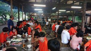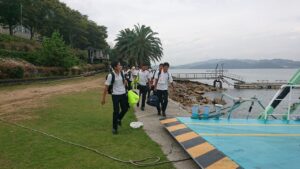 中高一貫コース、総合進学コースが岡山県の瀬戸内市牛窓の宿泊研修に向けて学校を出発しました。牛窓漁港から船に乗り、宿泊施設のカリヨンハウスに到着しました。あいにくの天候のため、当初の予定を変更し、備前焼の陶芸作りを体験しました。初めて作陶する生徒もおり、四苦八苦しながら土をこねました。そのあとは全員で晩御飯をいただきました。係が協力しあい、後片付けまでしっかりできました。休憩をはさみ、各クラスでミーティングを行い、今後のクラス運営について話し合いました。