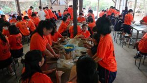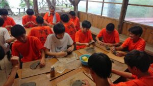 中高一貫コース、総合進学コースが岡山県の瀬戸内市牛窓の宿泊研修に向けて学校を出発しました。牛窓漁港から船に乗り、宿泊施設のカリヨンハウスに到着しました。あいにくの天候のため、当初の予定を変更し、備前焼の陶芸作りを体験しました。初めて作陶する生徒もおり、四苦八苦しながら土をこねました。そのあとは全員で晩御飯をいただきました。係が協力しあい、後片付けまでしっかりできました。休憩をはさみ、各クラスでミーティングを行い、今後のクラス運営について話し合いました。