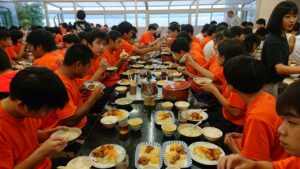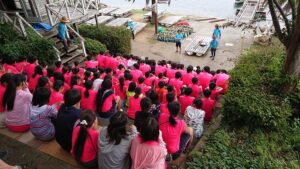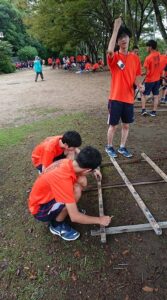 昨日、組み立てたいかだを海まで運び、「いかだトリップ」を体験しました。バランスや方向転換、乗り降りにいたるまで、いかだを安定させるためには一人一人が息を合わせて行動することが重要になります。お互いを思いやるとこやチームワークの重要性を身をもって体験できました。そのあとは昼食をとり、閉校式に臨みました。3日間お世話になったお礼を生徒代表が自分の言葉で伝え、多くの事を学んだ宿泊合宿が終了しました。