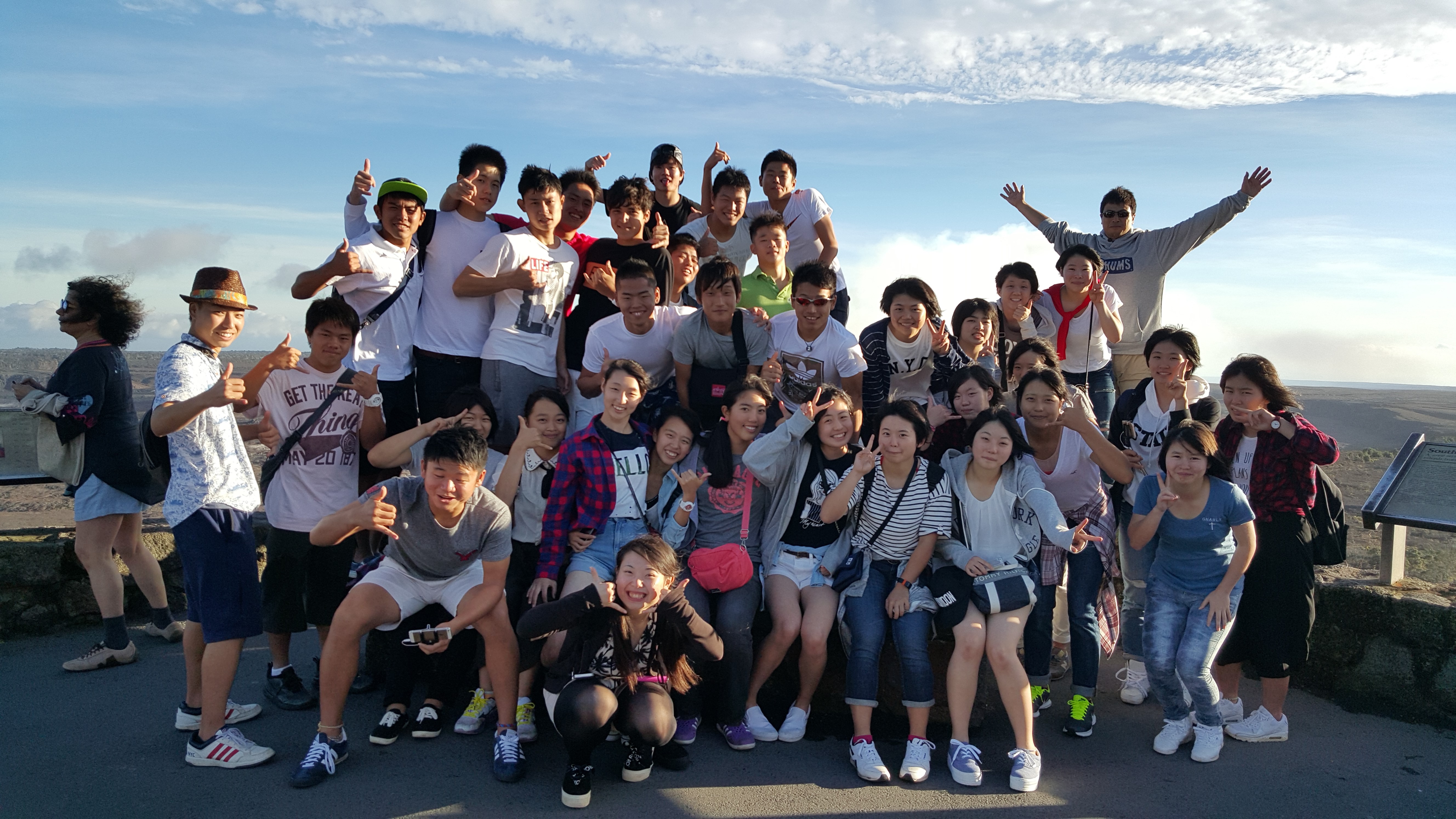 高校 Topics 高校2年 ハワイ修学旅行(1班)だより その2 2015.11.28 2日目朝食後、ホテルを出発し、イミロア天文センターやビッグアイランド・キャンディーズへ。昼食後は、ハワイ火山国立公園、アカカフォールズ州立公園にて大自然を満喫して帰ってきました。