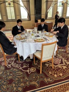 普段の授業とは違い、なかなかうまく口に運べない生徒もいましたが、いい意味で緊張感があり、おいしい食事をいただきながらたくさ