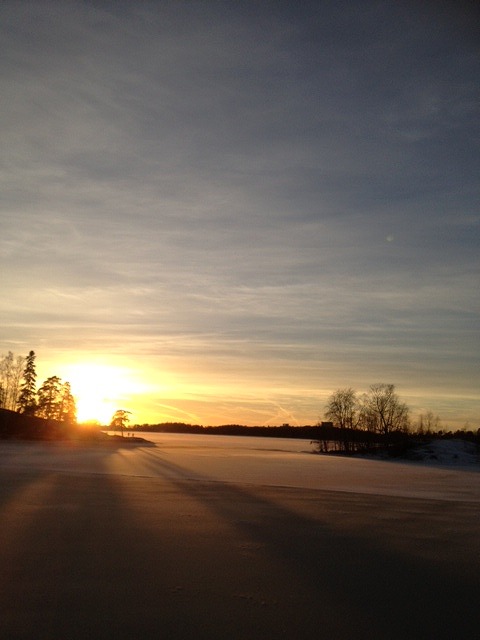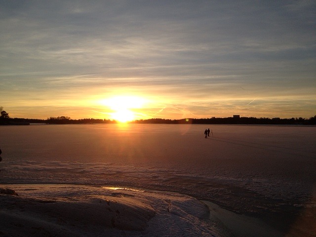 フィンランドも、早3日目。本日は終日ホストファミリーと過ごしました。引率している私達も、緊急の連絡がない限りホストマザーにお任せし、生徒達とは別行動になりました。私達は、ホストマザーの勤務するpakilan ylaaste中学校で、年に一度実施される在校生の保護者対象のオープンスクールにご一緒させていただきました。教育環境の違いに驚かされるばかりでした。午後はホストファザーお勧めのトレッキングコースに連れて行っていただき、一面の銀世界、凍りついた川や湖の上や公園から、日本では考えられないほどゆっくりゆっくり沈むフィンランドの夕陽に感動の時間を過ごさせていただきました。生徒達がどんな風に過ごし、奮闘して来たのか、明日の午後合流して教えてもらうのが楽しみです。