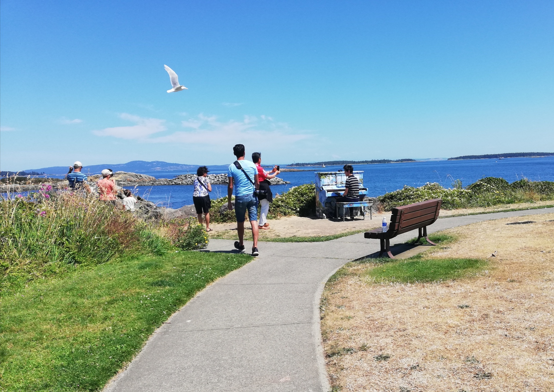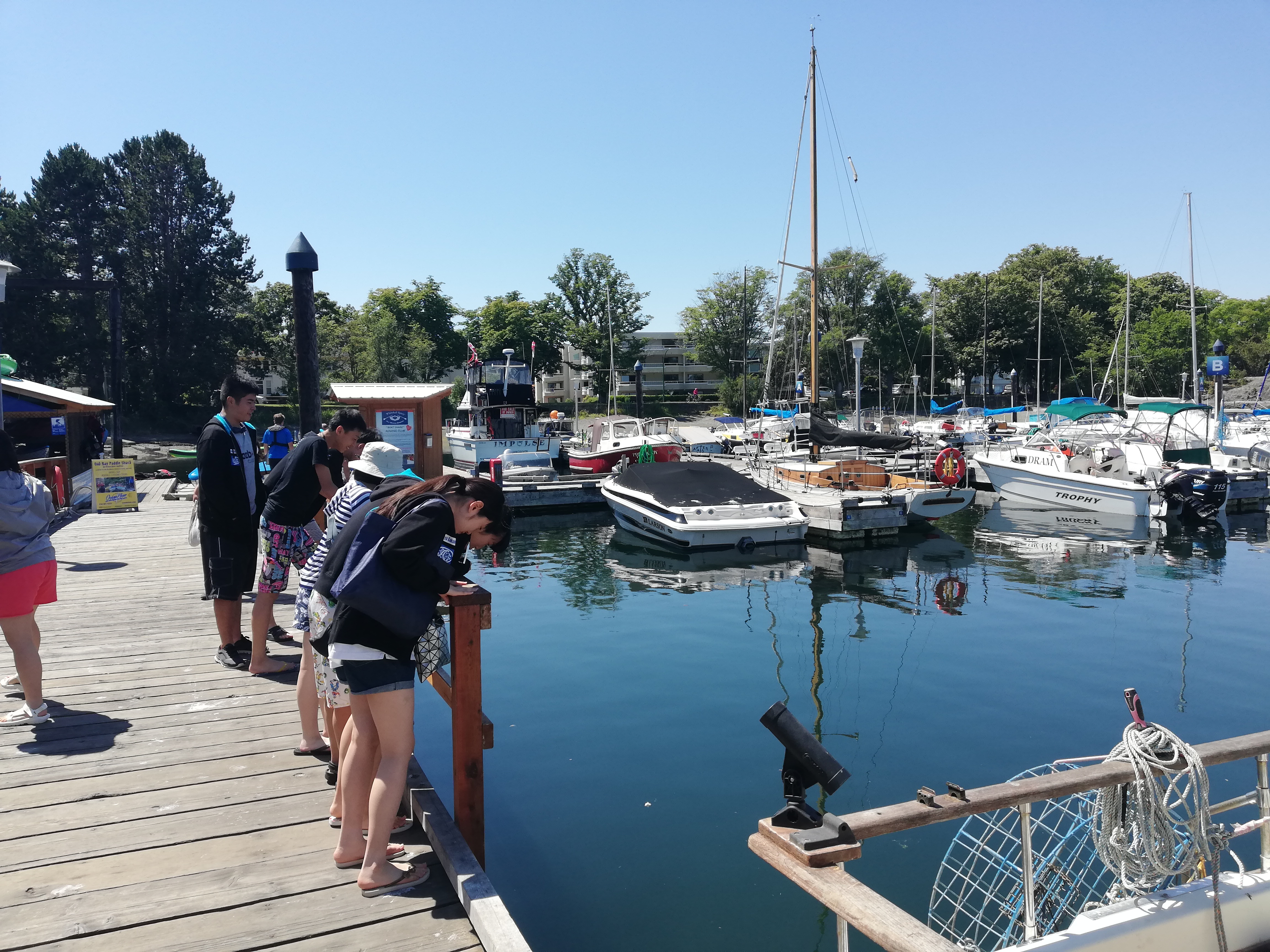 中学 高校 Topics 高2Fカナダ語学研修旅行だより9 2018.07.26 研修旅行もあと数日となって来ました。自分の英語が通じた嬉しさを感じたり、思うように話せず「もっと英語を話したい」という気持ちに駆られたりと、生徒たちは着実に英語に対する意欲を膨らませています。今日の午後は、まずマリーナでアザラシを発見。海辺のピアノを弾いて、観光客の拍手をもらったりもしました。カモメのフン害で一瞬テンションが下がりましたが、次のビーチアクティビティでは、冷たい水に悲鳴を上げながらも、泳いだり、砂遊びをしたり、芝生でスポーツをしたり、と楽しい時間を過ごしました。