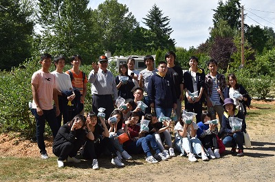 高校 Topics 高2Hカナダ語学研修だより4 2017.07.20 今日も、みんなちゃんと自分でバスに乗って、登校して来ました。昨日出された宿題も、難しく感じた生徒もいたようですが、何とか頑張ってやってきていました。 午後は、郊外のブルーベリー農園に行きました。ぎっしりと実をつけたブルーベリーの木々の間を歩きながら、次々に摘んでは口に入れていました。とても甘く、美味しかったです。ホストファミリーへのお土産にもたくさん持って帰りました。