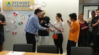 高校 Topics 高2Hカナダ語学研修だより最終 2017.07.31 いよいよ語学学校最終日。授業のあとには、各校でそれぞれ担当の先生から修了証をいただきました。そして、午後からはホストファミリーを招いてのお別れパーティです。出発前から準備を重ね、有志によるコントや歌、全員でのビンゴゲームで盛り上がりました。2週間という短い期間でしたが、英語力はもちろん、それぞれが成長できた2週間になりました。