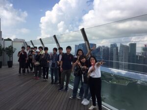 中高一貫コースと総合進学コースは午前中、マリーナ・ベイ・サンズの57階屋上にある展望デッキ、サンズ・スカイパークを訪れました。天候にも恵まれ、パノラマに広がる絶景を満喫することができました。