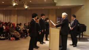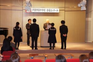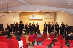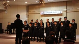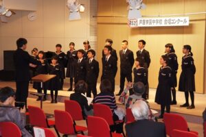 12月2日(月)2時より本校音楽ホールにて中学校校内合唱コンクールを行いました。52年間、本校で毎年続いた伝統ある合唱コンクールで見事、栄冠に輝いたのは「COSMOS」を熱唱した中2Aクラスのみなさんでした。おめでとうございます。どのクラスも、夏休み前から練習を始め、本番の日が近づくに連れて自主的に練習するなど必死に取り組めていました。中学生全員の努力に拍手です。