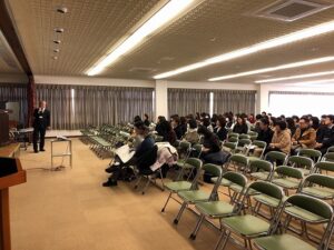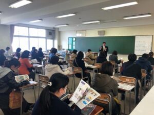 12月14日(土)育友会主催の進路ガイダンスが開催されました。参加者は75名、1部は講演会、2部は学校説明会を行いました。1部の講演会は、外部から講師をお招きして、「目的を持った進学とは・・・」をテーマにお話しいただきました。これからの大学進学に必要なこと、正しい進路選択について詳しく説明いただきました。2部の学校別説明会は、芦屋大学、近畿大学、関西外国語大学、大阪産業大学、大阪芸術大学、関西国際大学、神戸芸術工科大学、頌栄短期大学,京都外国語大学の8大学に来ていただき、説明を聞いて回れるよう各教室に分かれて対応していただきました。参加の皆さんは3つの大学のお話が聞けました。あわせて、本館廊下では大学・専門学校の資料配布会もおこなわれました。参加者の方々は、大学について多くを知ることができた。また、資料もたくさんもらえたと好評でありました。