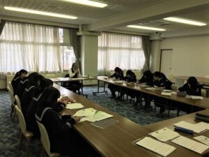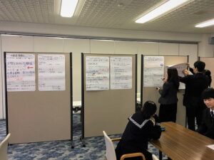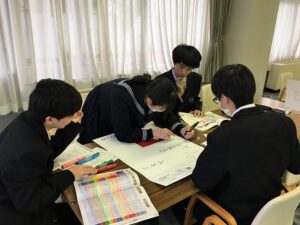 2月3日(月)特進コース1年は、6限・7限にアクティブラーニングに取り組みました。将来に進路のために学部・学科理解しようが目的に、6限に5分野(外国語・経済経営学・教育・情報工学・看護医療)の話を大学より講師の先生に来ていただき、話を聞きました。7限は、各班で司会、書記を決めて6限に聞いた話をポスターにしていきました。どの班も趣向を凝らし、時間内にポスターが完成し、みんな満足していました。講師の先生から初めてなのに、素晴らしいとお褒めの声を頂きました。