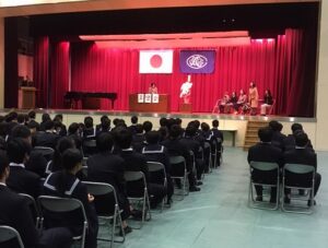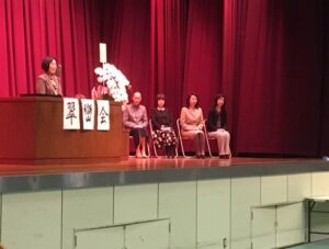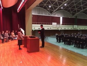 2月20日、本校の同窓会組織である『翠巒会』の皆さんにお越しいただき、今年の卒業生たちの入会式が行われました。猿丸会長から入会歓迎のお言葉を頂き、役員のご紹介、入会された皆様へと記念品をいただきました。また、卒業生の学年代表清水さん、井地君が各クラス代表を紹介し、お仲間に入れていただくご挨拶をしました。先輩方、よろしくお願いいたします。