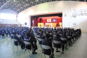 素晴らしい天候のもと、少し緊張した新入生の皆さんを迎え入れました。今年は中学校が43名、高等学校は269名の活力と熱気が満ち溢れた入学式でした。新型コロナウイルス感染拡大防止のため、保護者のご参加を1名に限り実施しました。