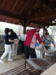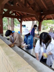 昼食は、先生たちも一緒にカレーライスを作りました。手袋をして食材を切るのに苦労をしましたが、ご飯も上手に炊けて、おいしくいただくことができました。食後は、みんなでガイドさんの案内でマングローブを見学しました。珍しい植物や生き物のお話を聞くことができました。最後に全員が将来の夢についてのスピーチをし、先生たちが一人ひとりに講評をして下さいました。