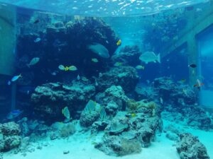 今日は、美ら海水族館からアメリカンビレッジでのショッピングと、観光の1日でした。これまで、お土産を買うチャンスがあまりなかったので、生徒たちは家族へのお土産探しに忙しくしていました。ホテルに戻り、最後の夕食の後、全員がこの旅行の感想を英語でスピーチしました。石垣島の海の美しさ、アクティビティの楽しさと共に、みんなと一週間過ごせたことへの感謝の言葉も多く聞かれたことは嬉しい限りでした。英語研修で教えていただいた先生方との思い出も大切にして、これからも英語の勉強と進路に向けての準備も頑張っていきましょう。