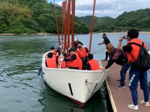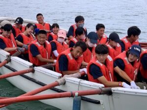 午前中、座禅を体験し精神修養。その後カッターでのレースです。夕刻には芦屋に戻りますが、一回り成長した自分になっていると思います。