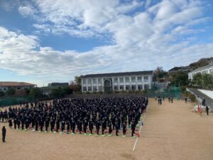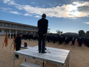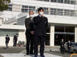 主将の酒井くん(高校3年)がしっかりと決意を述べ、生徒たちは盛大な拍手で応えました。